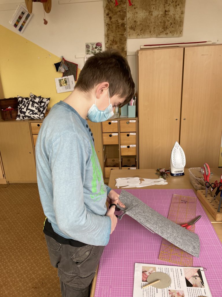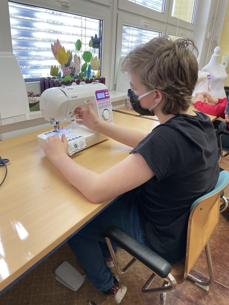 In Textilarbeit nähen wir an der Nähmaschine. Dazu gehen wir in den Textilarbeitsraum.